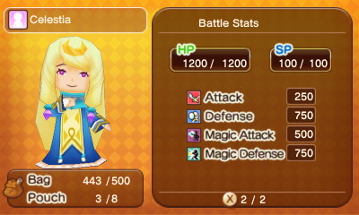 Celestia's combat stats.